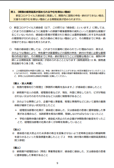 国税庁からコロナ感染症に関しHPに下記の記載があります。