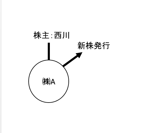 まずは親会社になりたい方の株式会社A社で新株を発行させます。